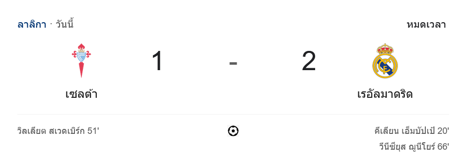 ผลบอลสดลาลิกา 2024 ระหว่าง ทีมเซลต้า บีโก้ vs ทีมเรอัล มาดริด วันนี้ 20/10/67 ดูบอลย้อนหลัง คลิปไฮไลท์ ดูบอลลาลิกา 2024