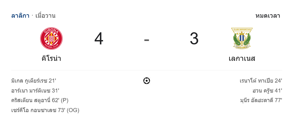 ดราม่าท้ายเกม! คิโรน่า เปิดบ้านเฉือน เลกาเนส สุดมันส์ 4-3 ในศึกลาลิกา 2024