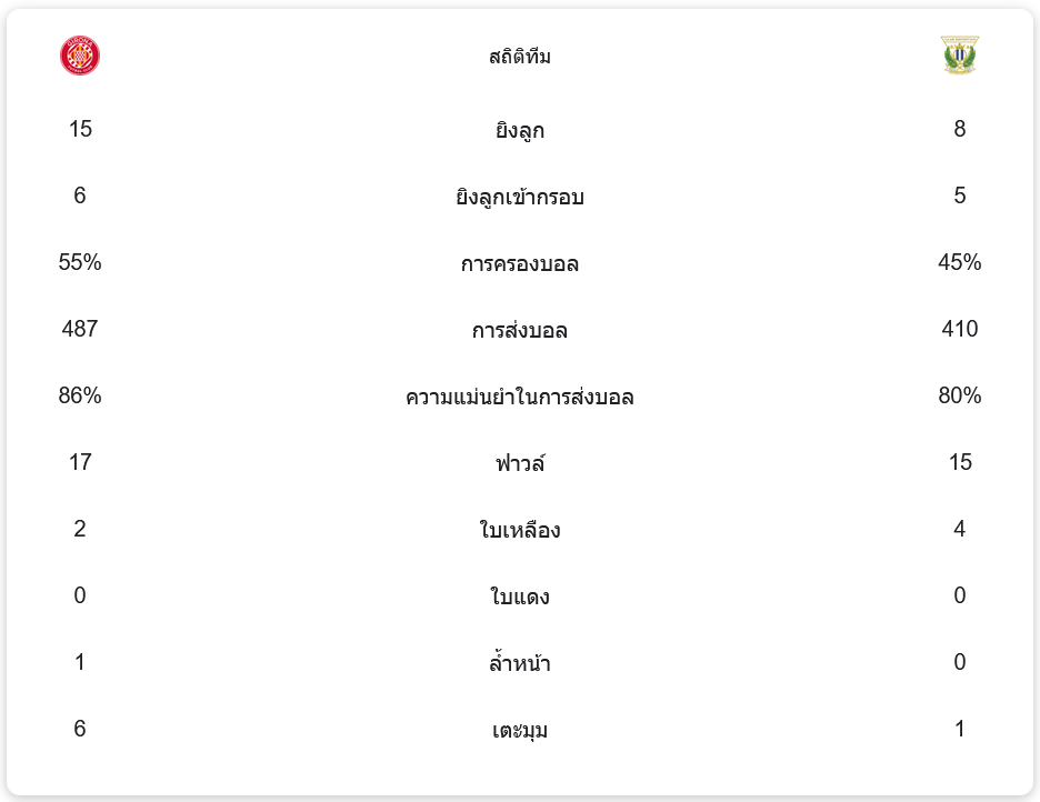 - ⚽ นาทีที่ 21: มิเกล กูเตียร์เรซ ยิงให้คิโรน่านำ 1-0