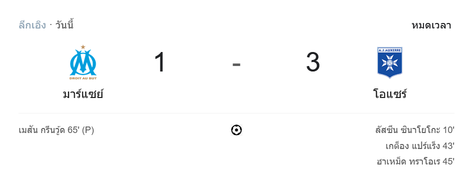 โอลิมปิก มาร์กเซย พ่ายคาบ้านให้กับ เอเจ โอแซร์ 1-3 ในศึกลีกเอิง ฝรั่งเศส 2024 บ้านกีฬา รายงานผลบอลสดสุดเซอร์ไพรส์