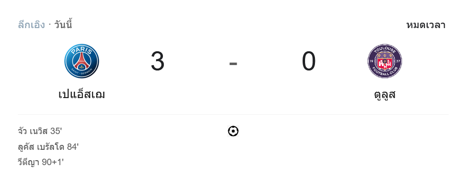 จาก : ผลบอลสด ลีกเอิง ฝรั่งเศส 2024 ระหว่าง ปารีส แซงต์ แชร์กแมง 3-0 ตูลูส วันนี้ 23/11/67 – บ้านกีฬา