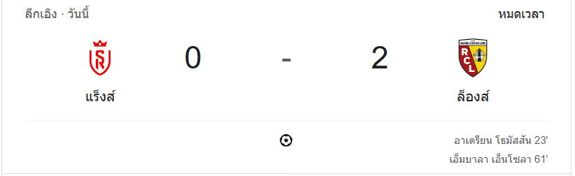 ผลบอลสด ลีกเอิง ฝรั่งเศส 2024 ระหว่าง ทีม แร็งส์ vs ล็องส์ วันนี้ 30/11/67 ดูบอลย้อนหลัง คลิปไฮไลท์ ดูบอลลีกเอิงฝรั่งเศส 2024