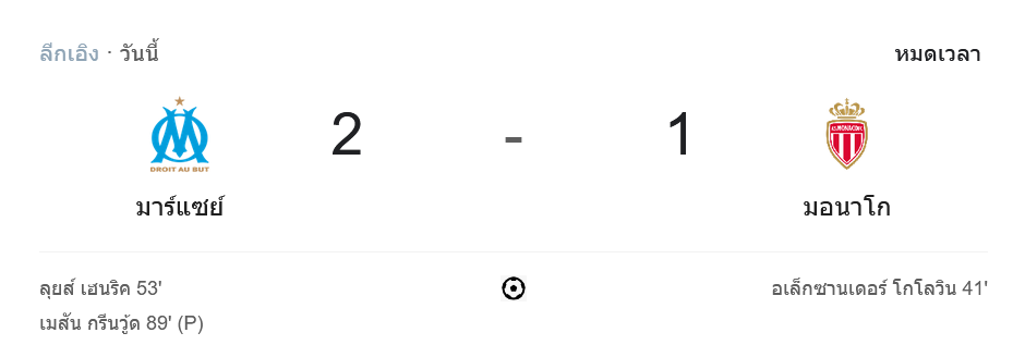 บ้านผลบอล สรุปผล มาร์กเซย เฉือนชนะ โมนาโก 2-1 สุดมันส์ในศึก ลีกเอิง 2024