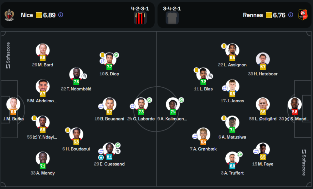 นีซใช้แผน 4-2-3-1 โดยเน้นการบุกที่รวดเร็วและการต่อบอลที่แม่นยำ พวกเขาใช้พื้นที่ด้านข้างในการสร้างสรรค์เกมรุก และการประสานงานระหว่าง ดิย็อป และ ลาบอร์ด นั้นทำได้อย่างยอดเยี่ยม ส่วนแรนส์มาในระบบ 3-4-2-1 ซึ่งเน้นการครองบอลและโจมตีในแดนกลาง อย่างไรก็ตาม ความแน่นอนในเกมรับยังเป็นปัญหาที่พวกเขาต้องแก้ไข
