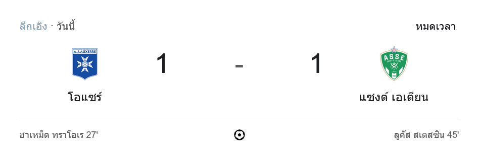 จาก : ผลบอลสด ลีกเอิง ฝรั่งเศส 2024 ระหว่าง เอเจ โอแซร์ 1-1 แซงต์ เอเตียน วันนี้ 25/1/68 – บ้านกีฬา