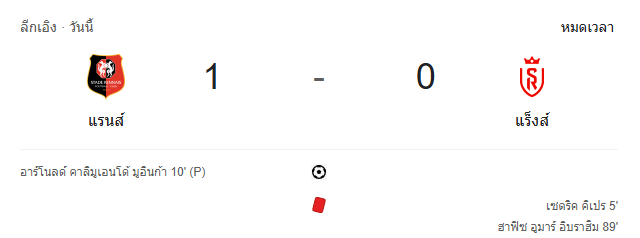 - นาทีที่ 48 กรรมการเป่าหมดครึ่งแรก แรนส์นำ แร็งส์ 1-0