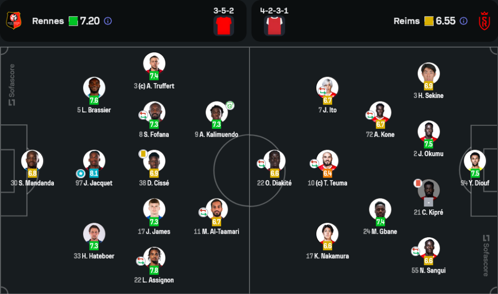 ฌาเกต์ เป็นหัวใจสำคัญในแนวรับของ แรนส์ ตลอดเกม คุมจังหวะเกมรับได้ดี และช่วยทีมเก็บคลีนชีตสำเร็จ