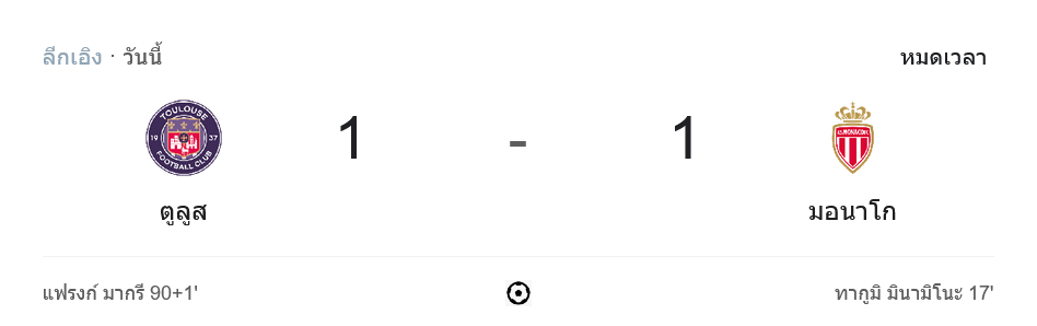 จาก : ผลบอลสด ลีกเอิง ฝรั่งเศส 2024 ระหว่าง ตูลูส 1-1 โมนาโก วันนี้ 8/3/68 – บ้านกีฬา