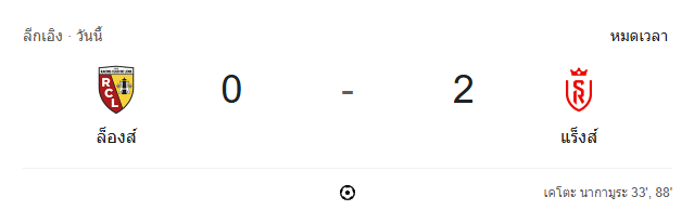 - จบเกม: ล็องส์ 0-2 แร็งส์