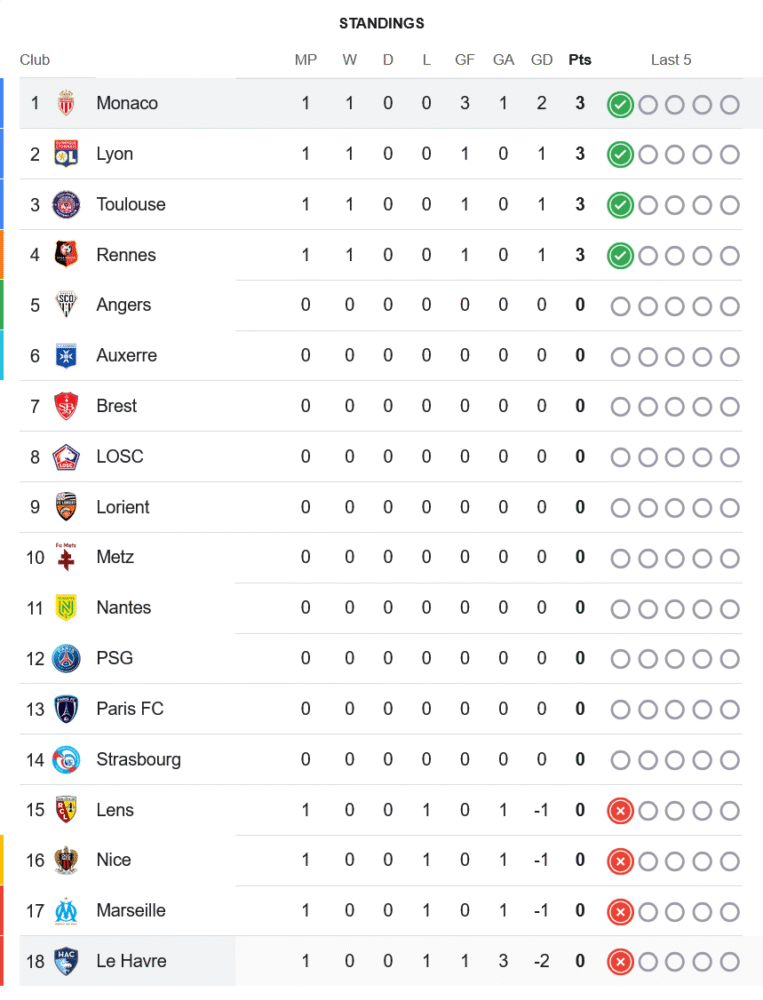 จาก ตารางบอล ลีกเอิงนัดถัดไป โมนาโกจะพบกับสตราส์บูร์กในวันที่ 31 สิงหาคม ซึ่งถือเป็นอีกหนึ่งเกมที่สำคัญในการยึดหัวตาราง ขณะที่เลอ อาฟร์จะเปิดบ้านรับนีซในวันที่เดียวกัน หากยังไม่กระเตื้องก็มีสิทธิ์วิกฤตต่อเนื่อง