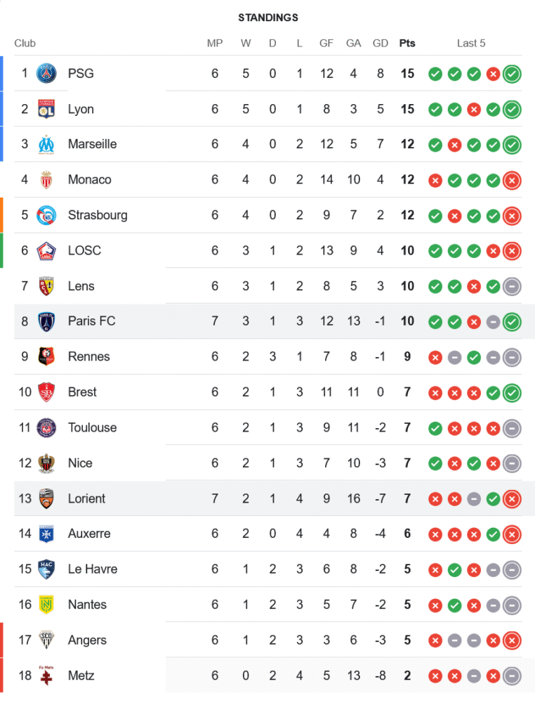 ชัยชนะเกมนี้ทำให้ ปารีส เอฟซี ขยับขึ้นอันดับ 8 ของตาราง มี 10 คะแนนจาก 7 นัด ฟอร์มกำลังเข้าฝัก ขณะที่ ลอริยองต์ สถานการณ์เริ่มน่าเป็นห่วง จมอยู่อันดับ 13 มีเพียง 7 คะแนนจาก 7 นัด ต้องเร่งแก้เกมเพื่อหลุดจากโซนอันตราย