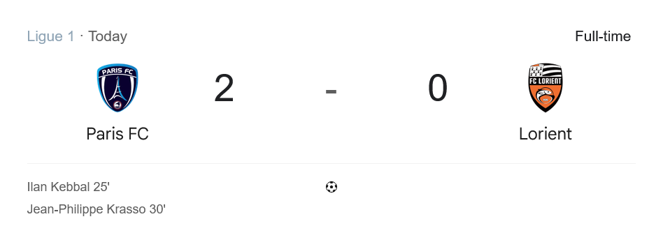 ศึกฟุตบอล ลีกเอิง ฝรั่งเศส สัปดาห์นี้เรียกเสียงฮือฮาในหมู่แฟนบอล บ้านผลบอล ได้ไม่น้อย เมื่อ ปารีส เอฟซี เปิดบ้านโชว์ฟอร์มสุดเข้มข้น ไล่บดเอาชนะ ลอริยองต์ ไปด้วยสกอร์ 2-0 จากผลงานเด็ดของสองแนวรุก อิลาน เค็บบาล และ ฌอง-ฟิลิปป์ คราสโซ เก็บสามแต้มล้ำค่า พร้อมขยับอันดับในตารางคะแนนขึ้นมาอยู่ที่ 8 ของลีก ขณะที่ ลอริยองต์ ต้องกลับไปแก้เกมหลังจมโซนล่างอันดับ 13