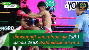 - เช็กครบทุกคู่! ผลมวยไทยล่าสุด วันที่ 1 ตุลาคม 2568 พร้อมสรุปศึกเดือดทั่วประเทศ