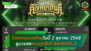 - โปรแกรมมวยไทยวันนี้ 2 ตุลาคม 2568 ดูมวยสดครบทุกศึกที่ BANKEELA