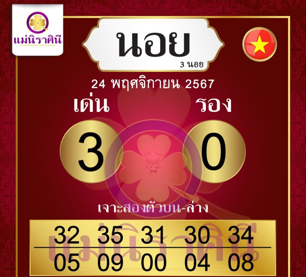 งวดนี้ แม่นิราศินี ชูเลขเด่นที่ 3 และรองที่ 0 เลขสองตัวอย่าง 32 และ 35 ดูน่าสนใจเป็นพิเศษ ใครชอบเลขสายนี้ห้ามพลาดเด็ดขาด!