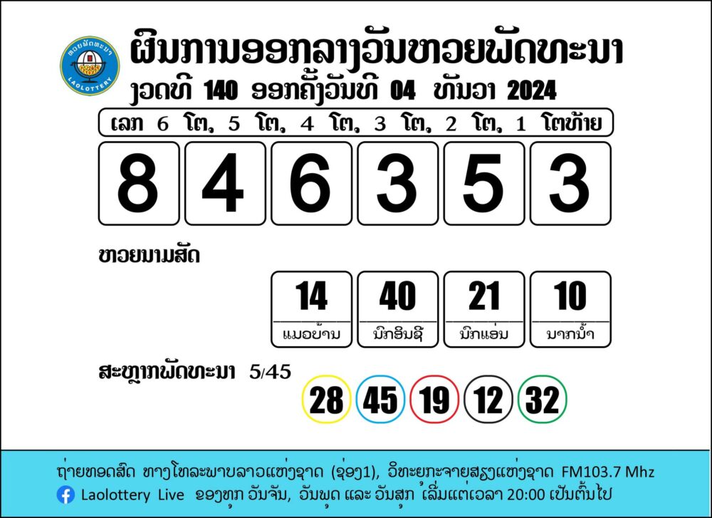ຖ່າຍທອດສົດການອອກເລກລາງວັນຫວຍພັດທະນາ 4/12/2024