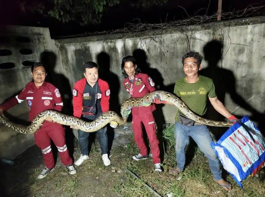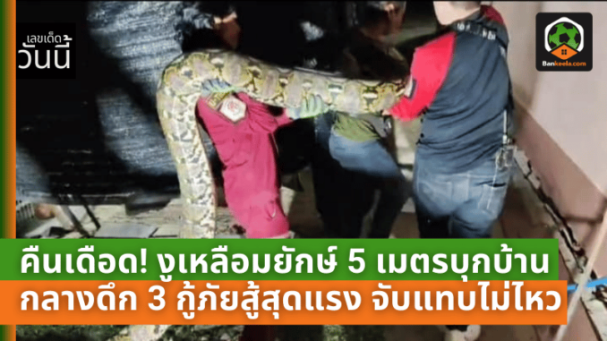 3 กู้ภัยรวมพลังจับ งูเหลือมดิ้นสู้สุดแรง