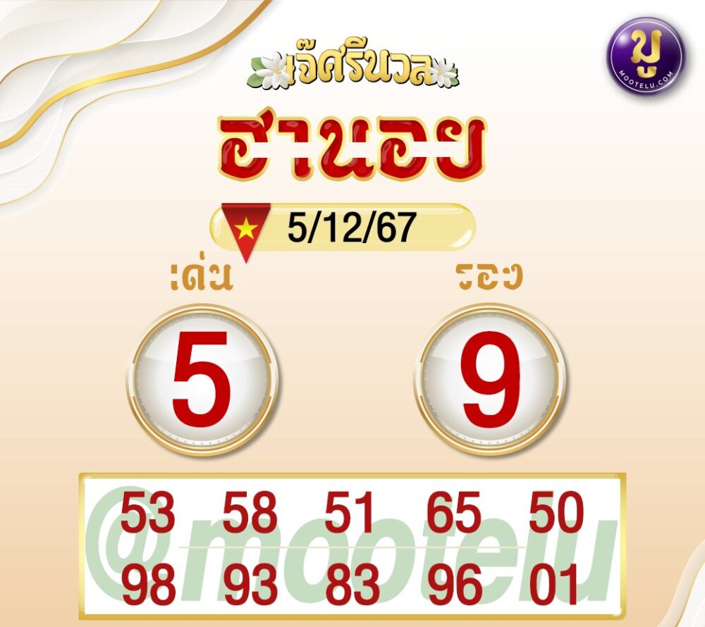 เจ๊ศรีนวล ยังคงความแม่นยำกับเลข 5 และ 9 งวดนี้ โดยมีเลขสองตัวที่น่าสนใจอย่าง 53 และ 98 ที่อาจเป็นตัวนำโชคสำหรับคุณในวันนี้