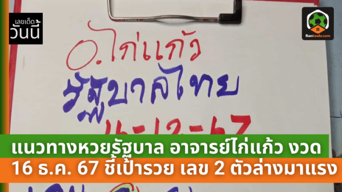เลขเด็ด อ.ไก่แก้ว งวด 16 ธันวาคม 2567