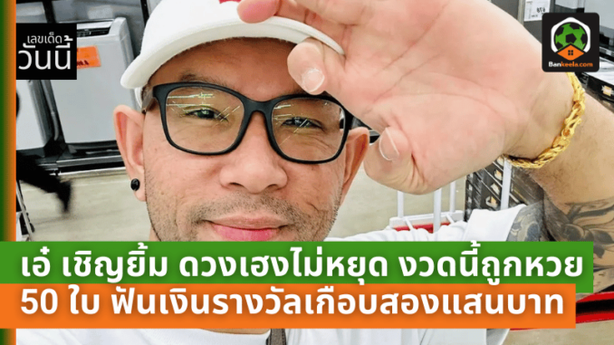 ดวงเฮงต่อเนื่องแบบไม่มีพักสำหรับนักแสดงตลกชื่อดังอย่าง เอ๋ เชิญยิ้ม ที่กลายเป็นขวัญใจคอหวยทั่วประเทศ หลังถูกสลากกินแบ่งรัฐบาลอย่างต่อเนื่องหลายงวดติด โดยล่าสุดงวดนี้เจ้าตัวคว้ารางวัลอีกครั้ง พร้อมรับทรัพย์จุกๆ จากการถูกรางวัลรวมกว่า 50 ใบ เป็นจำนวนเงินมหาศาลถึง 196,000 บาท งานนี้เรียกเสียงฮือฮาและความยินดีจากแฟนๆ ได้ไม่น้อย