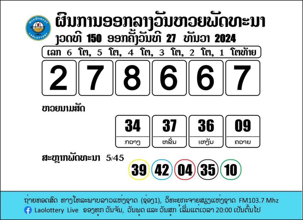 ตรวจหวยลาว (ຫວຍລາວ) งวดประจำวันที่ 27/12/67