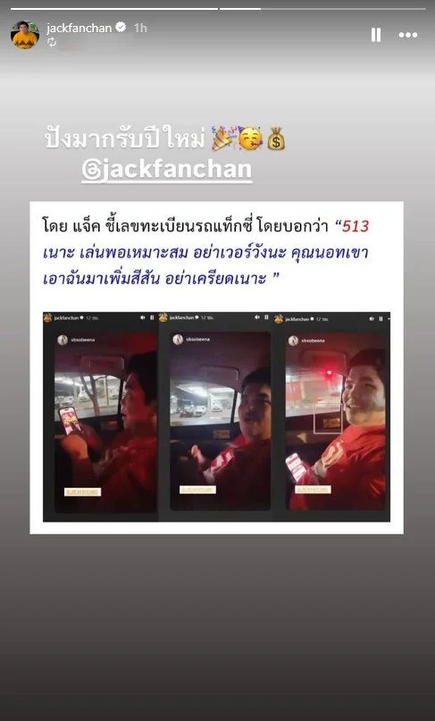 เรื่องราวเริ่มต้นจากหนุ่มแจ็คที่โพสต์สตอรี่อินสตาแกรมส่วนตัว jackfanchan หลังนั่งแท็กซี่กลับบ้าน โดยชี้เป้าหมายเลข “513” พร้อมข้อความติดตลกว่า “เล่นพ่อเหมาะสม อย่าเวอร์วังนะ!” ซึ่งกลายเป็นไวรัลในทันที หลังจากผลสลากกินแบ่งรัฐบาลออกมา ปรากฏว่าเลขท้าย “51” ของทะเบียนรถแท็กซี่ที่แจ็คใบ้ตรงกับรางวัลเลขท้ายสองตัว ทำเอาแฟน ๆ รับทรัพย์กันถ้วนหน้า