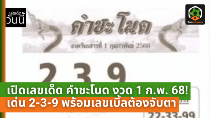 เผยแนวทางเลขเด็ด “คำชะโนด” งวด 1 ก.พ. 68 เลขเด่น 2-3-9 พร้อมเลขเบิ้ลสุดแม่น!