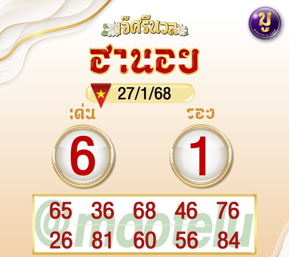 ต่อกันด้วยแนวทางจาก เจ๊ศรีนวล สำนักที่ขึ้นชื่อเรื่องความแม่นยำ งวดนี้ให้เลขเด่น 6 และเลขรอง 1 ซึ่งตัวที่น่าสนใจได้แก่ 65, 36, 68 และ 46 คอหวยท่านไหนที่กำลังมองหาเลขแม่น ๆ จากเจ๊ศรีนวล อย่าลืมนำไปพิจารณานะครับ!