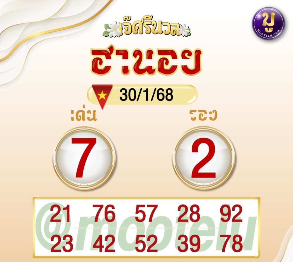 สวัสดีครับแฟน ๆ คอหวยทุกท่าน! วันนี้ บ้านกีฬา ขอนำเสนอ แนวทางหวยฮานอย สำหรับวันที่ 30 มกราคม 2568 ให้ทุกท่านได้ลุ้นโชคกันอย่างเต็มที่ กับเลขเด็ดจากสำนักดังที่การันตีความแม่น ไม่ว่าจะเป็น แม่นิราศินี, เจ๊ศรีนวล และอาจารย์ศรราม เราได้รวบรวมเลขเด่น-รอง เลขสองตัวและสามตัวที่น่าสนใจมาให้ทุกท่านแล้ว ถ้าพร้อมแล้วไปดูเลขเด็ดกันเลยครับ!