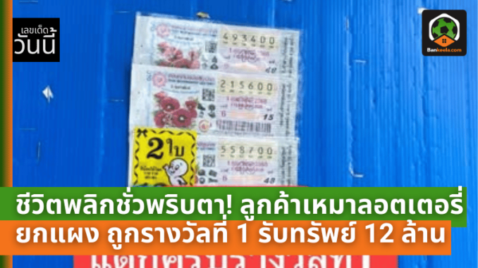 กลายเป็นอีกหนึ่งเรื่องราวสุดอึ้งในแวดวงคนรักหวย เมื่อมีลูกค้ารายหนึ่งตัดสินใจ เหมาลอตเตอรี่ ทั้งแผงจากพ่อค้าริมทาง โดยไม่คาดคิดว่าการตัดสินใจครั้งนั้นจะเปลี่ยนชีวิตไปตลอดกาล เพราะลอตเตอรี่ที่เหมามานั้นถูกรางวัลที่ 1 รับโชคใหญ่ไปถึง 12 ล้านบาท ทำเอาพ่อค้าถึงกับต้องโพสต์แสดงความยินดีพร้อมความรู้สึกสุดทึ่งกับความเฮงของลูกค้า