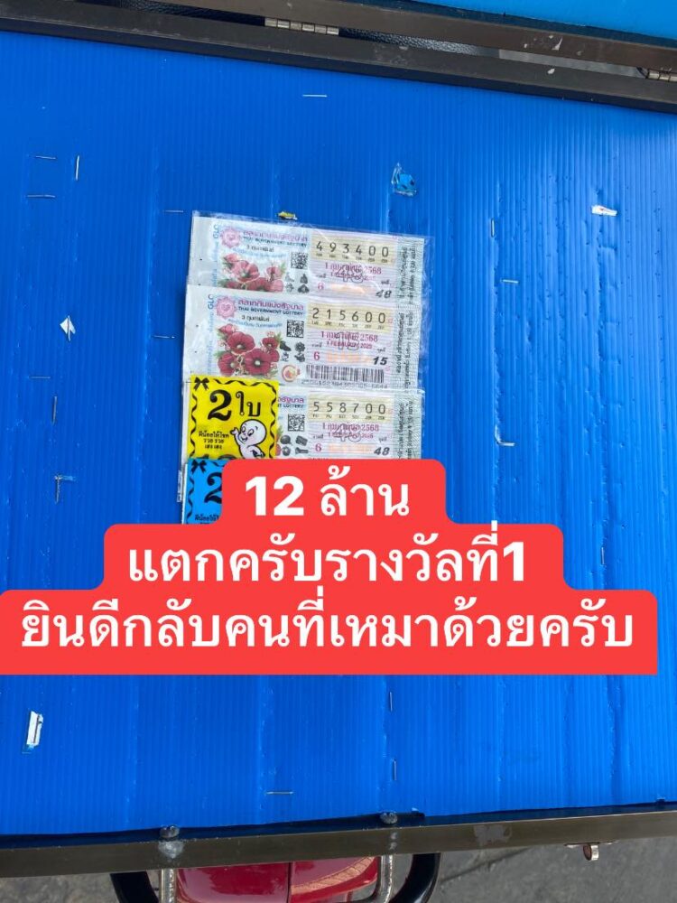 “12 ล้านแตกจริง ๆ ครับ #ยินดีด้วยนะครับ ขอบคุณนะครับที่เหมาหมดแผง แล้วผมจะไปตามหาคนที่ถูกตรงไหน”