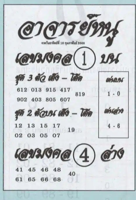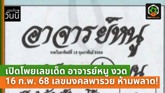 เลขเด็ด อาจารย์หนู งวด 16 กุมภาพันธ์ 2568