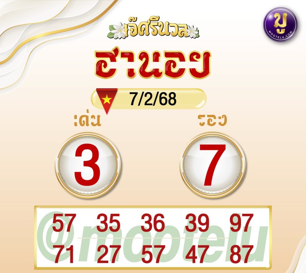 • เจ๊ศรีนวล: เด่น 3, รอง 7 โดยมีเลขเด่น 57, 35, 36 ที่มาแรงสุดๆ