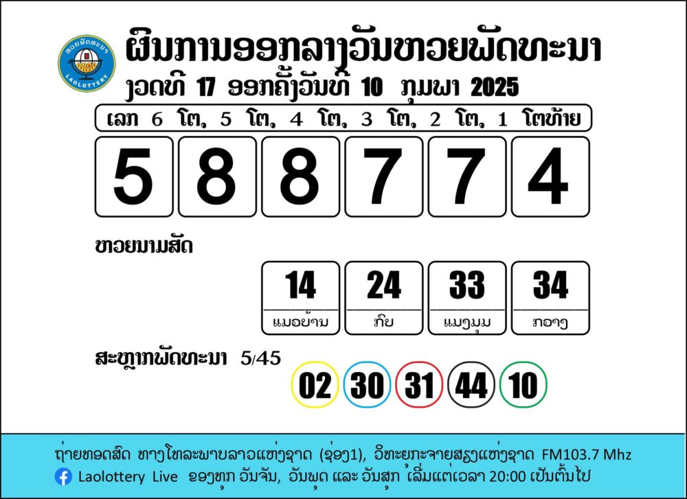 ຖ່າຍທອດສົດການອອກເລກລາງວັນຫວຍພັດທະນາ 10/2/2025