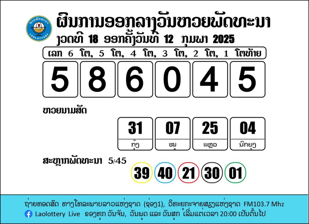ตรวจหวยลาววันนี้ งวดประจำวันพุธที่ 12 กุมภาพันธ์ 2568