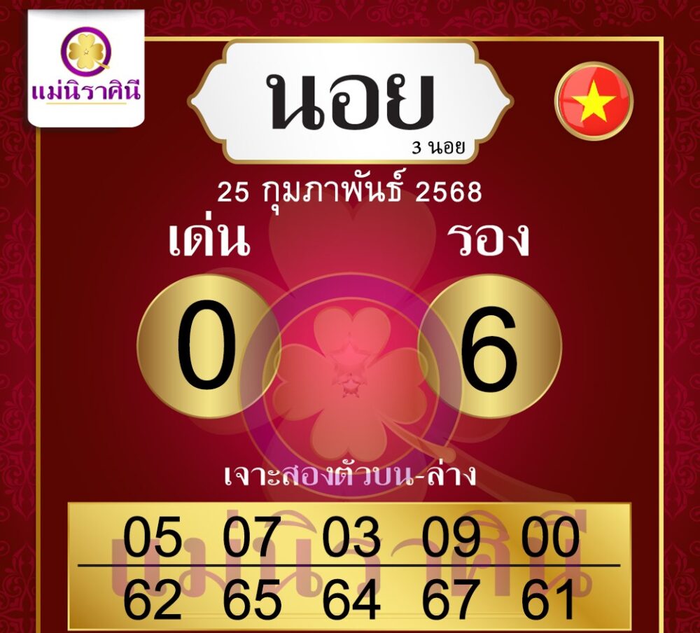 ✅ แม่นิราศินี: เด่น 0, รอง 6 เลขเด่นที่มาแรง ได้แก่ 05, 07, 03