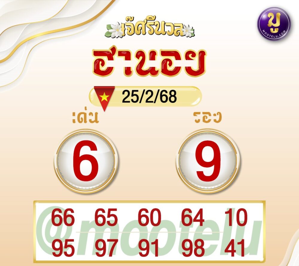 ✅ เจ๊ศรีนวล: เด่น 6, รอง 9 โดยมีเลขเด่น 66, 65, 60 ที่คอหวยต้องจับตา