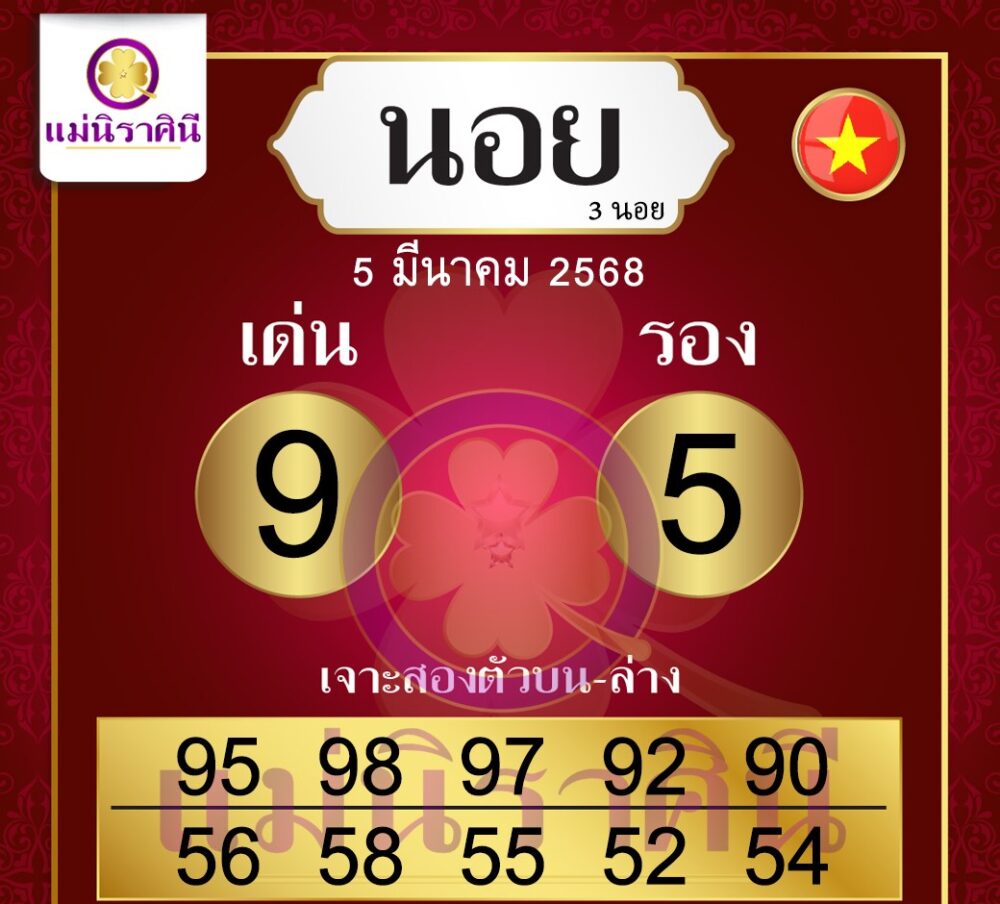 ✅ แม่นิราศินี: เด่น 9, รอง 5 เลขเด่นที่มาแรง ได้แก่ 95, 98, 97