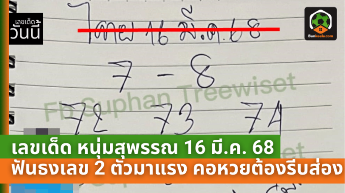 แนวทางเลขเด็ด หนุ่มสุพรรณ งวด 16/3/68 ครบเซ็ตทั้งเลข 2 ตัวและ 3 ตัว