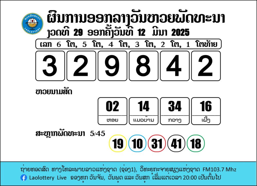 ຖ່າຍທອດສົດການອອກເລກລາງວັນຫວຍພັດທະນາ 12/3/2025