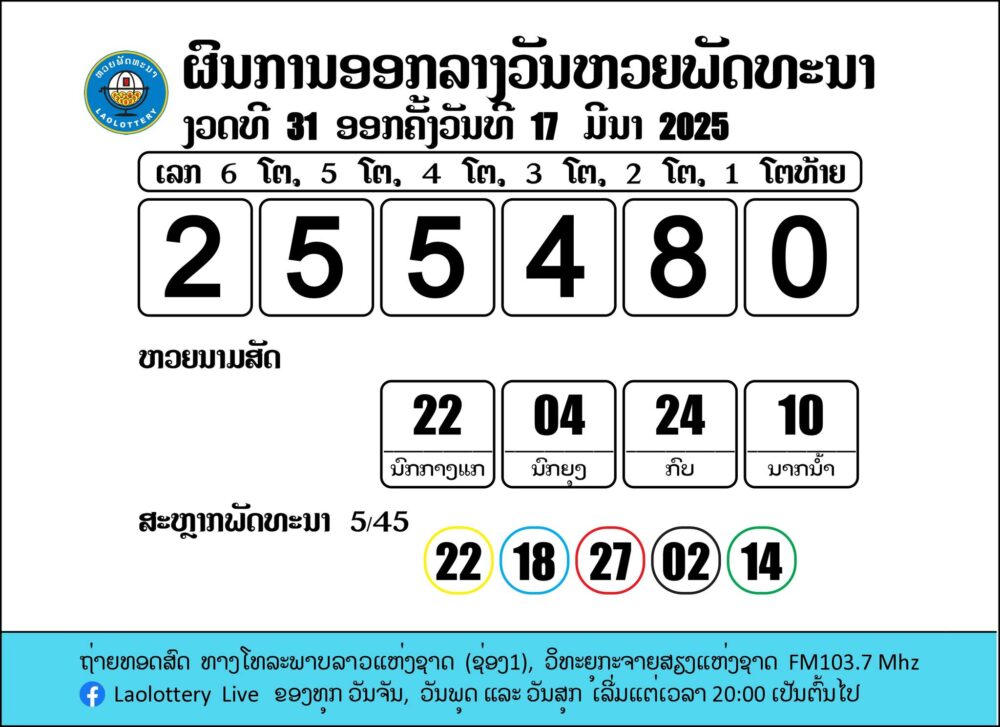 ຖ່າຍທອດສົດການອອກເລກລາງວັນຫວຍພັດທະນາ 17/3/2025