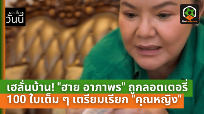 ฮาย อาภาพร นครสวรรค์ นักร้องลูกทุ่งชื่อดัง ผู้เป็นไอดอลสายเสี่ยงโชค ออกมาโชว์ความเฮงแบบจัดเต็มอีกครั้ง หลังจากตรวจลอตเตอรี่ที่ซื้อไว้แล้วพบว่าตัวเองถูกหวยมากถึง 100 ใบ งานนี้เจ้าตัวถึงกับลั่นประกาศให้ทุกคนเตรียมตัวเรียกเธอว่า “คุณหญิง” ได้เลย