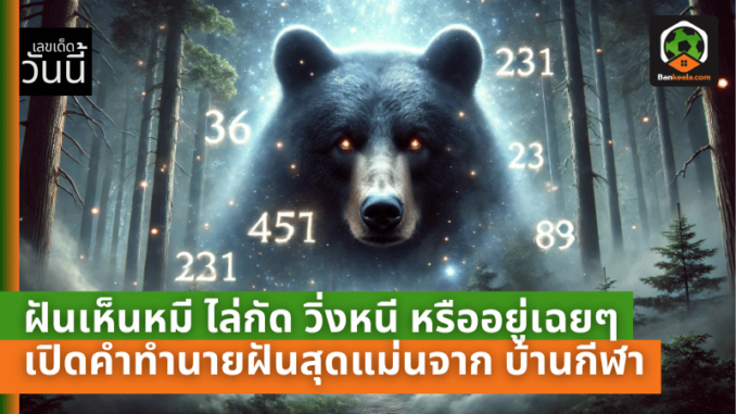 การ ฝันเห็นหมี ในลักษณะต่างๆ สามารถบอกลางดีและลางร้ายได้ขึ้นอยู่กับบริบทของความฝัน อย่างไรก็ตาม เลขเด็ดบ้านกีฬา จากความฝันเกี่ยวกับหมี ได้แก่ 36, 47, 57, 231, 26, 83, 61, 89, 996, 64, 78, 278, 34, 84, 588, 29, 579 ซึ่งอาจเป็นตัวเลขนำโชคของคุณ