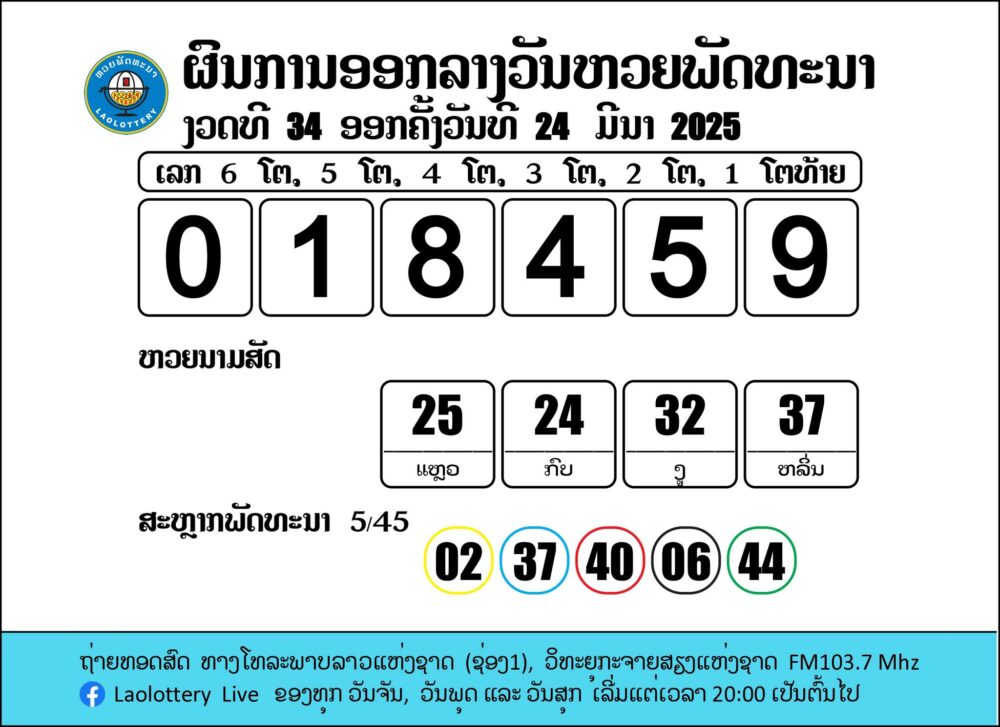 ຖ່າຍທອດສົດການອອກເລກລາງວັນຫວຍພັດທະນາ 24/3/2025