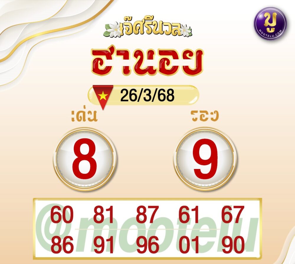 แนวทางหวยฮานอยวันนี้ 26/3/68 เจ๊ศรีนวล อาจารย์ศรราม เลขเด็ดมาแรงจาก บ้านกีฬา