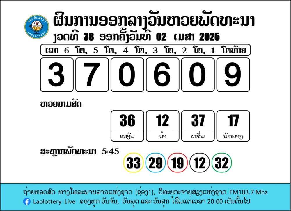ຖ່າຍທອດສົດການອອກເລກລາງວັນຫວຍພັດທະນາ 2/4/2025