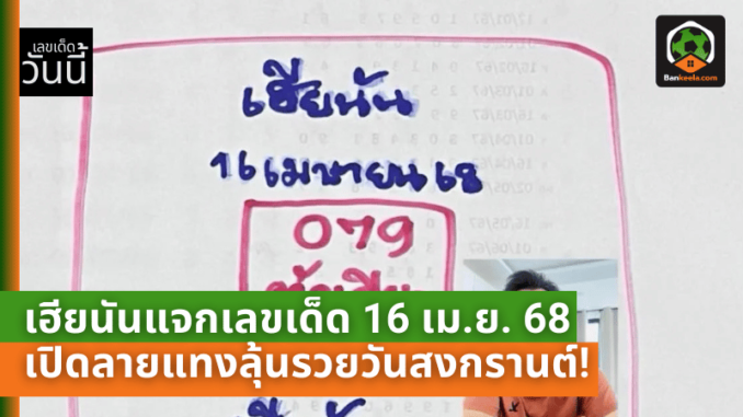 แม้เพิ่งผ่านพ้นการออกรางวัลสลากกินแบ่งรัฐบาลงวดต้นเดือนเมษายนไปไม่นาน แต่กระแสการค้นหา เลขเด็ด งวดถัดไปกลับไม่มีทีท่าว่าจะลดลงเลย ยิ่งเป็นงวดที่ตรงกับเทศกาลมหาสงกรานต์ด้วยแล้ว บรรยากาศการลุ้นโชคยิ่งเข้มข้นขึ้นไปอีกหลายเท่าตัว และแน่นอนว่า เฮียนัน ไม่ปล่อยให้แฟน ๆ ต้องรอนาน ล่าสุดเขาได้เผยแนวทาง เลขเด็ด ชุดแรกสำหรับงวด วันที่ 16 เมษายน 2568 ออกมาเรียบร้อยแล้ว เพื่อให้บรรดาคอหวยได้รีบจับจองซื้อสลากกินแบ่งรัฐบาลกันตั้งแต่เนิ่น ๆ