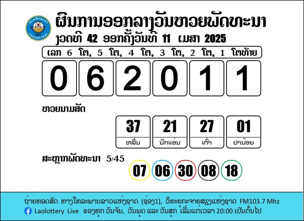 ຖ່າຍທອດສົດການອອກເລກລາງວັນຫວຍພັດທະນາ 11/4/2025
