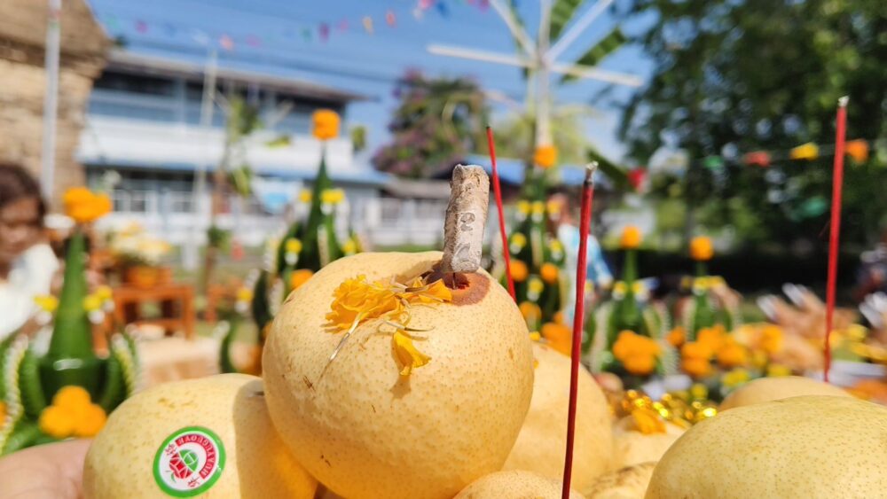 ในปีนี้ พิธีบวงสรวงกลับมายิ่งใหญ่อีกครั้ง โดยมีการประกอบพิธีเซ่นไหว้องค์ปราสาทตามธรรมเนียมดั้งเดิม พร้อมไฮไลต์สำคัญคือการจุดธูปเสี่ยงทายขอพรรับปีใหม่ไทย ซึ่งเป็นกิจกรรมที่ได้รับความสนใจอย่างล้นหลามในหมู่คอหวย โดยปีนี้ “ธูปเลขเด็ด” ปรากฏเป็นเลข 523 ชัดเจนท่ามกลางสายตาผู้ร่วมพิธี