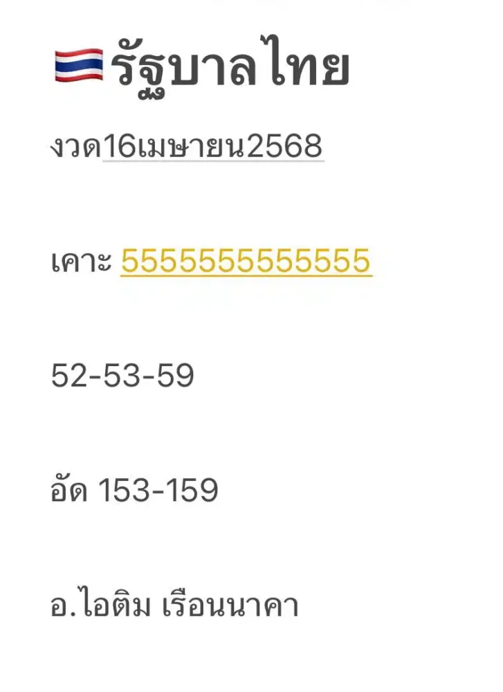 เลขเด็ด อ.ไอติม เรือนนาคา งวด 16 เมษายน 2568